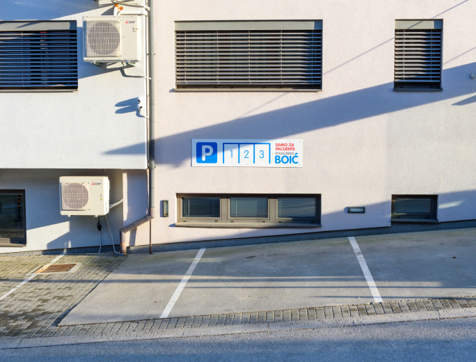Nalazimo se u centru Zaboka, iznad Gradske tržnice, na adresi Nikole Tesle 1b, sa osiguranim parkirnim mjestom za pacijente poliklinike.
